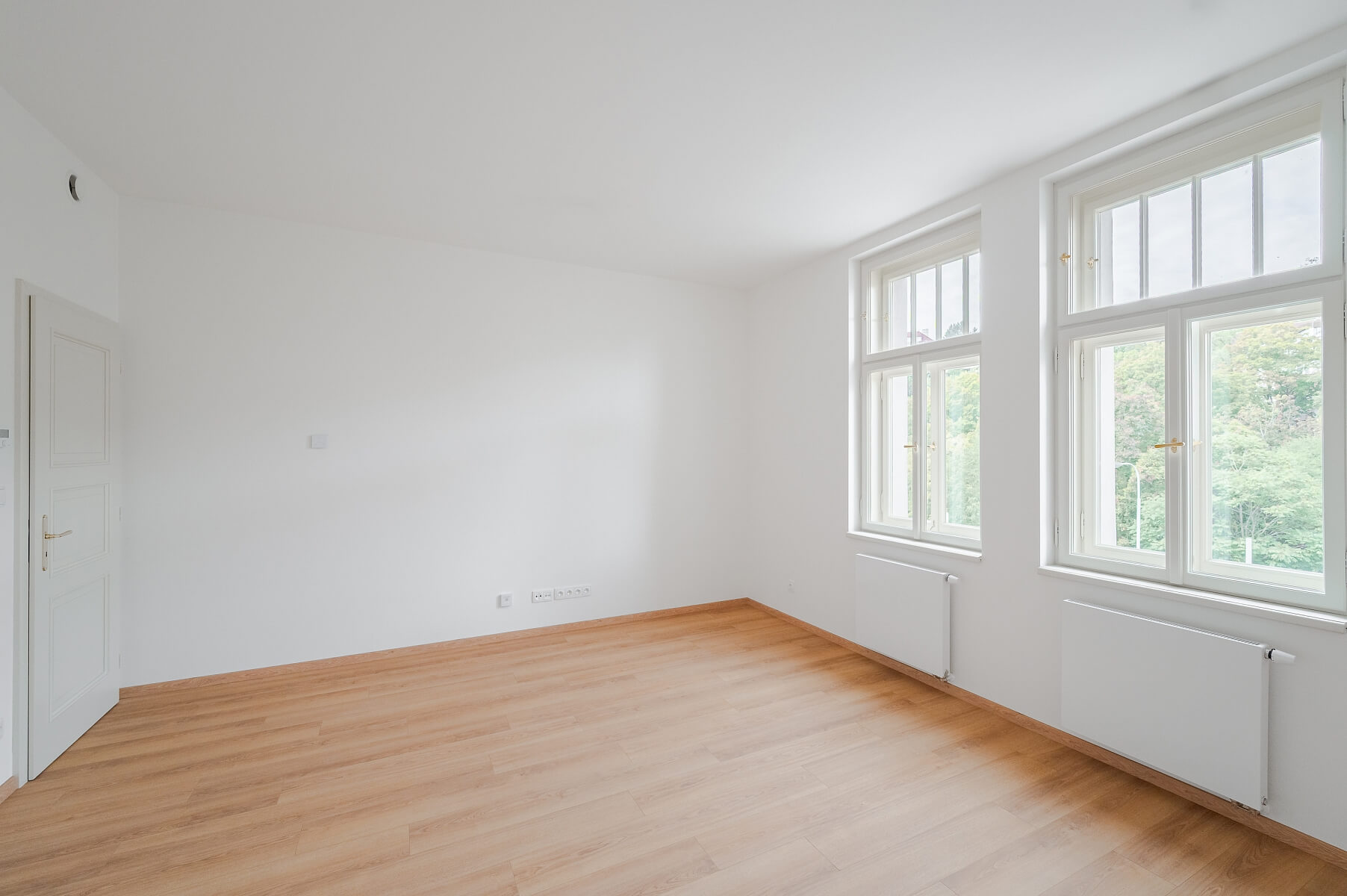 Nový dvoupokojový byt s výhledem do zeleně protější stráně se nachází ve 4. podlaží nákladně zrekonstruovaného činžovního domu s výtahem. Rezidenční projekt Plzeňská 171 situovaný v pražských Košířích splňuje současné požadavky na vysoký standard bydlení v žádané lokalitě a službám na dosah.
