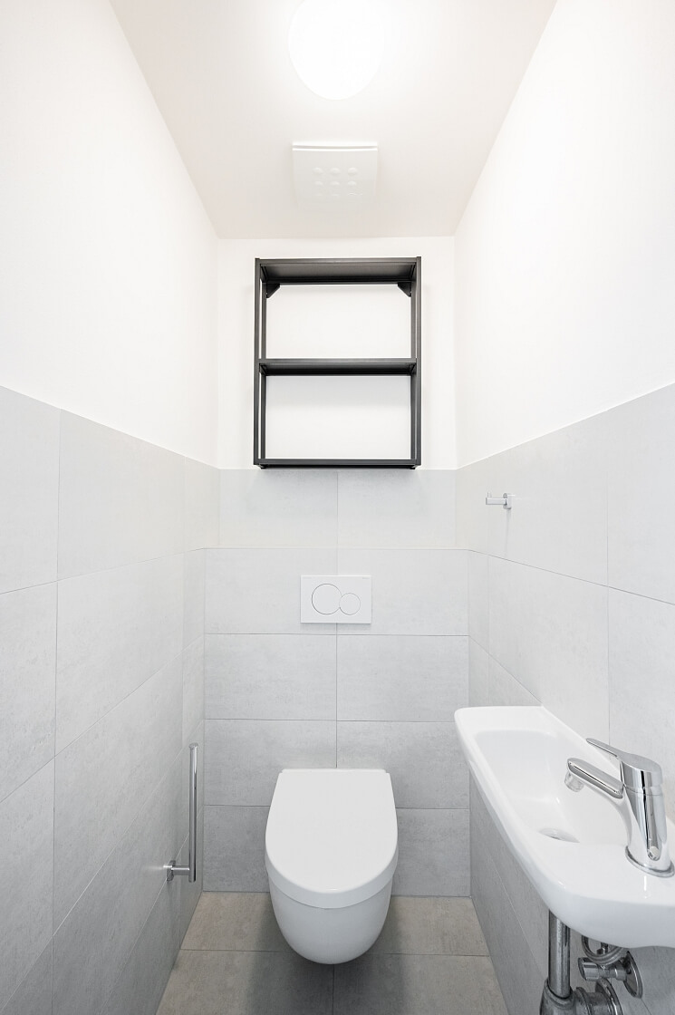 Okna i podlahy jsou dřevěné, vybavení zahrnuje kuchyňskou linku na míru s vestavěnými spotřebiči. Vytápění zajišťuje centrální kotelna. Společné prostory historického domu zdobí zrepasované původní architektonické a řemeslné prvky. Jednotlivá patra spojuje nejen výjimečné dobové schodiště, ale i moderní výtah.