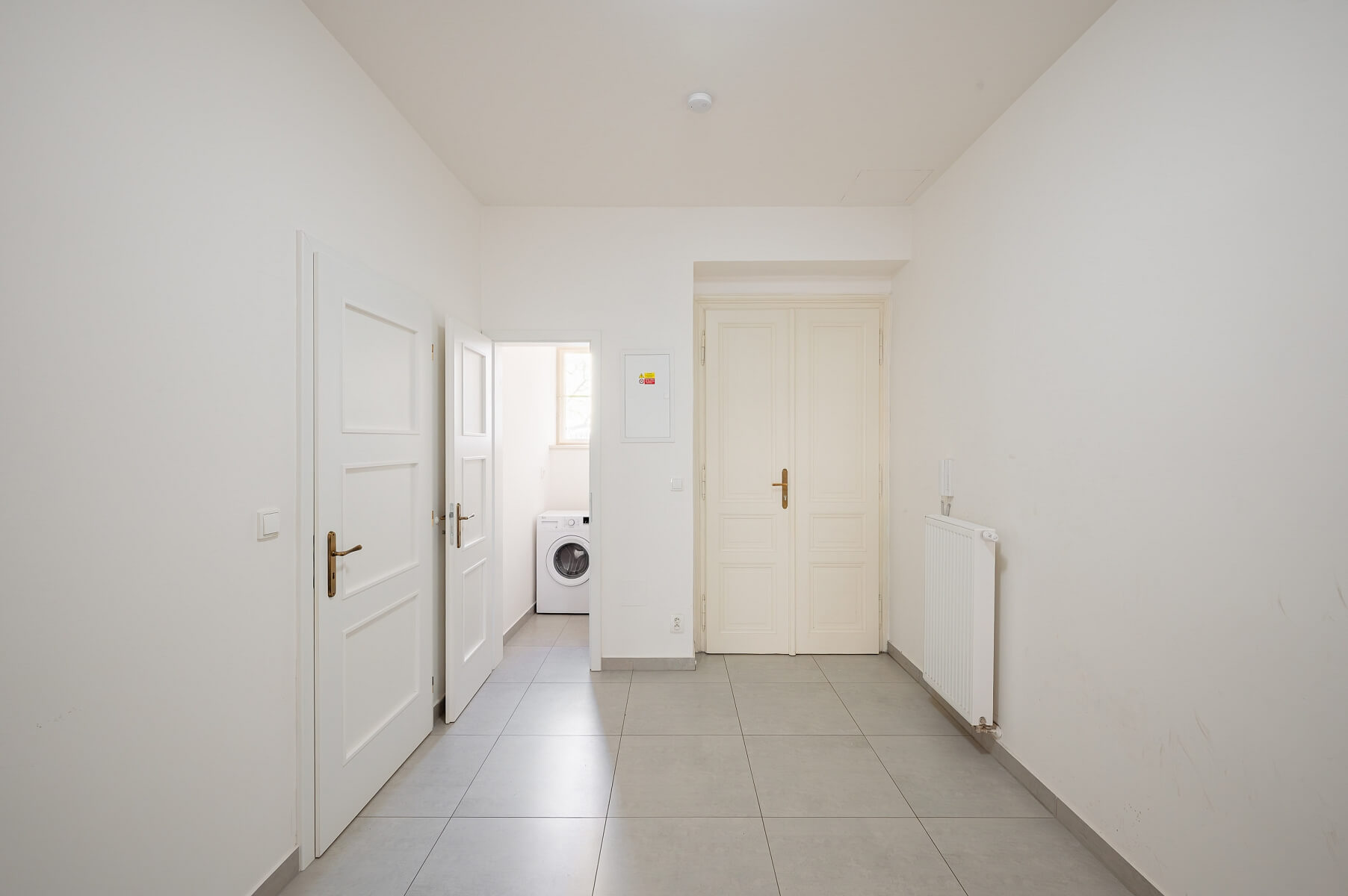 V 1. podlaží Rezidence Svornosti situované v centrální části Smíchova, na dosah ruky stanice metra Anděl i zastávky tramvají a široké nabídky restaurací, kaváren i obchodů, se nachází klimatizovaný třípokojový byt s balkónem orientovaným do tichého vnitrobloku.