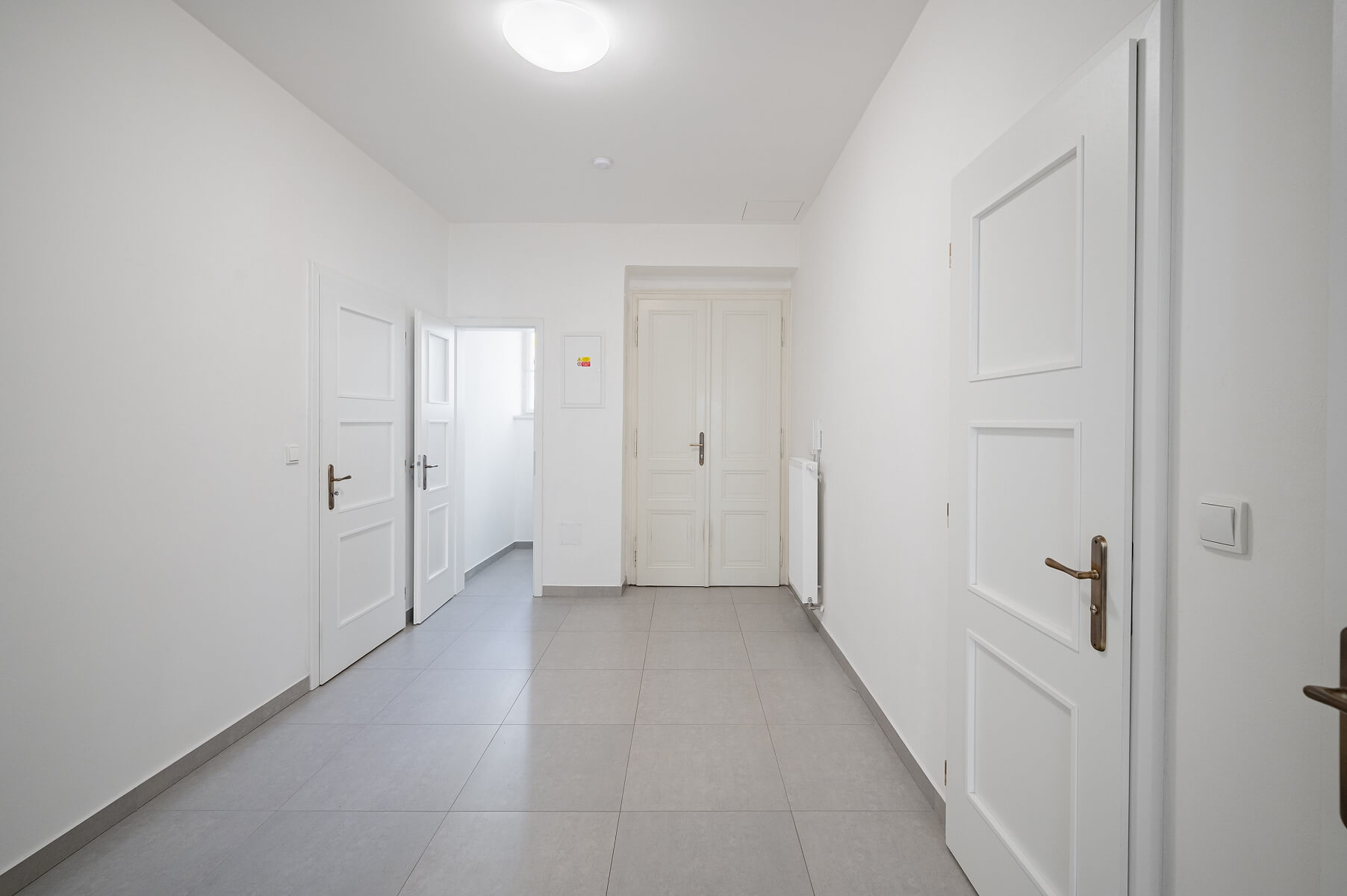 Okna i podlahy jsou dřevěné, vybavení zahrnuje kuchyňskou linku na míru zařízenou vestavěnými spotřebiči. Vytápění zajišťuje centrální kotelna. Společné prostory činžovního domu zdobí zrepasované původní architektonické a řemeslné prvky. Jednotlivá patra spojuje nejen výjimečné historické schodiště, ale i moderní výtah.
