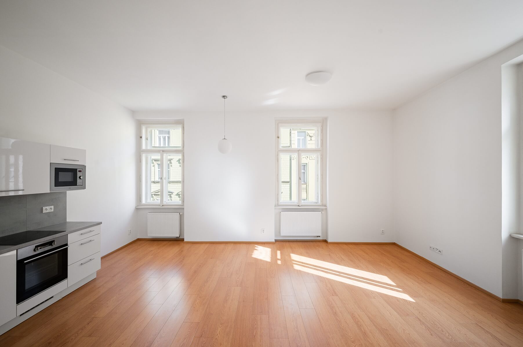 Okna i podlahy jsou dřevěné, vybavení zahrnuje kuchyňskou linku na míru s vestavěnými spotřebiči. Vytápění zajišťuje centrální kotelna. Společné prostory historického domu zdobí zrepasované původní architektonické a řemeslné prvky. Jednotlivá patra spojuje nejen výjimečné dobové schodiště, ale i moderní výtah.