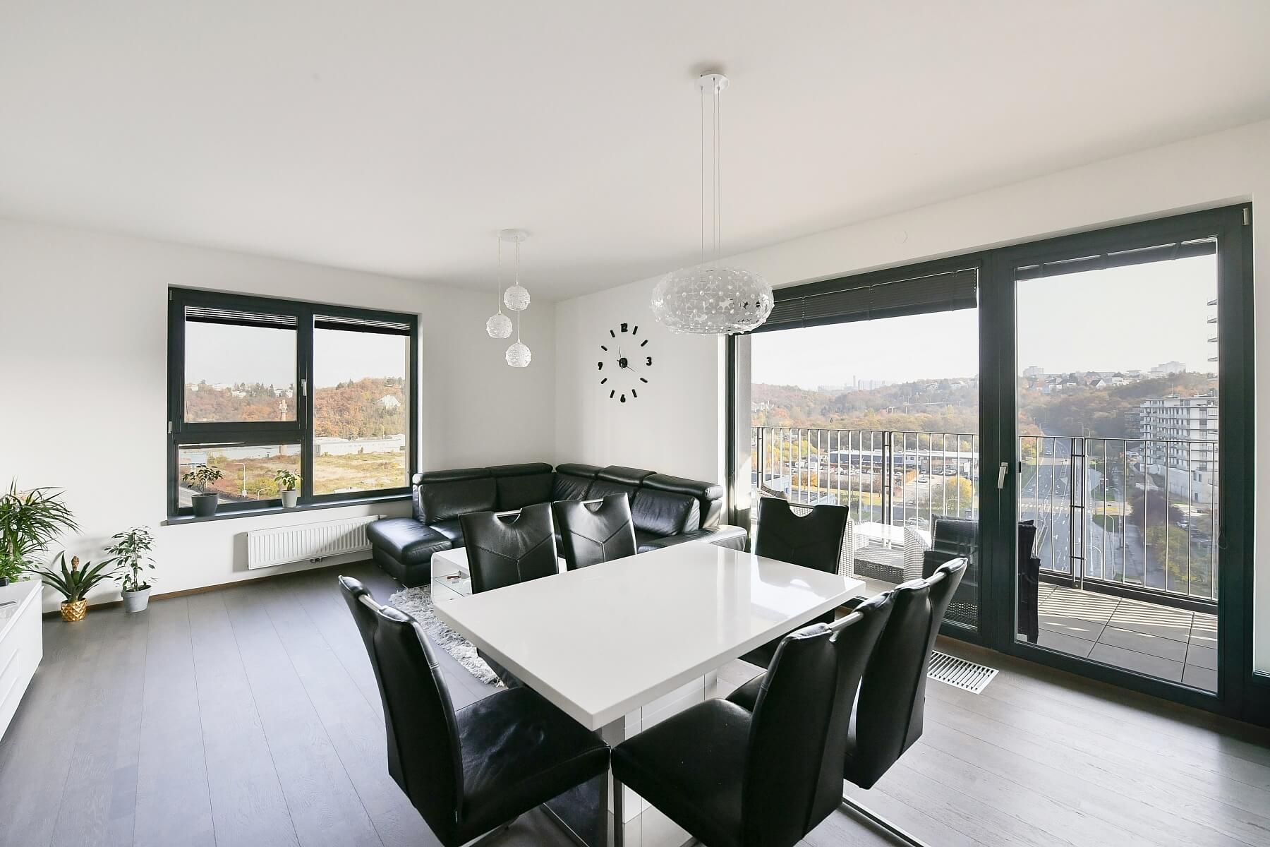 Velkoryse pojatý čtyřpokojový byt s lodžií, parkovacím místem a nerušeným výhledem na protější svahy se nachází v 8. nadzemním podlaží moderního projektu Rezidence Zahálka s veřejně přístupným parkem, přilehlým golfovým hřištěm, cyklostezkou podél Vltavy a občanskou vybaveností v Modřanech.