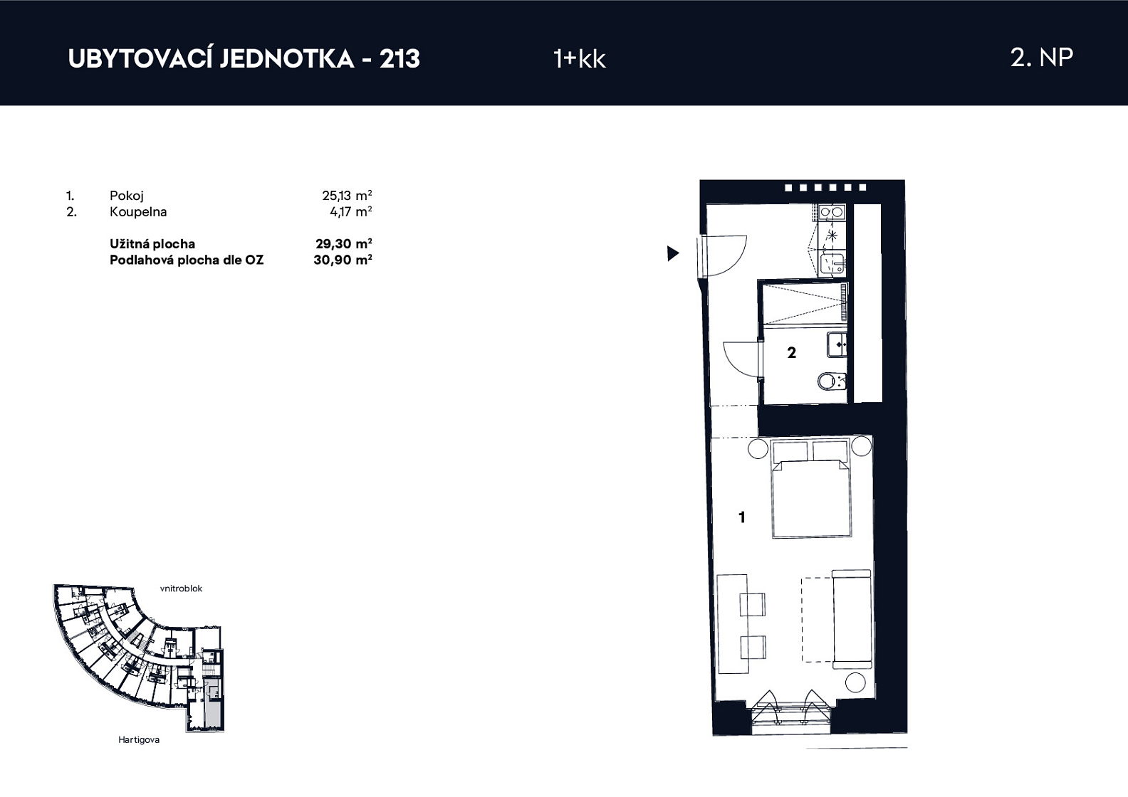Ubytovací jednotka 1+kk, 2.NP, č. 213
