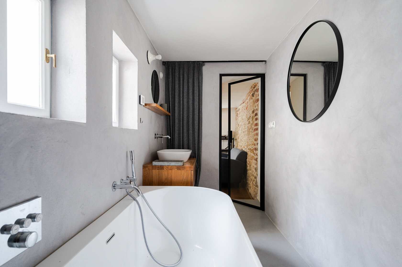 Unikátní historický ráz nemovitosti podtrhuje propracovaný interiér, jenž byl realizován s důrazem na každý detail a moderní pojetí. Atmosféru dotvářejí dřevěné podlahy, přiznané stropní trámy a nábytek vyrobený na míru. V domě jsou repasovaná dřevěná špaletová okna s dvojskly a hliníkové vstupní dveře. Obytné místnosti vytápějí litinové radiátory, koupelnu podlahové topení. O vyšší úroveň pohodlí se stará klimatizace značky Midea. Vytápění zajišťuje elektrokotel Protherm, alternativně lze využít nový krb s rozvody tepla do patra. Dům prošel několika fázemi rekonstrukcí, které zahrnovaly kompletní výměnu rozvodů, opravu střechy, sanaci zdiva a obnovu všech interiérových prvků.