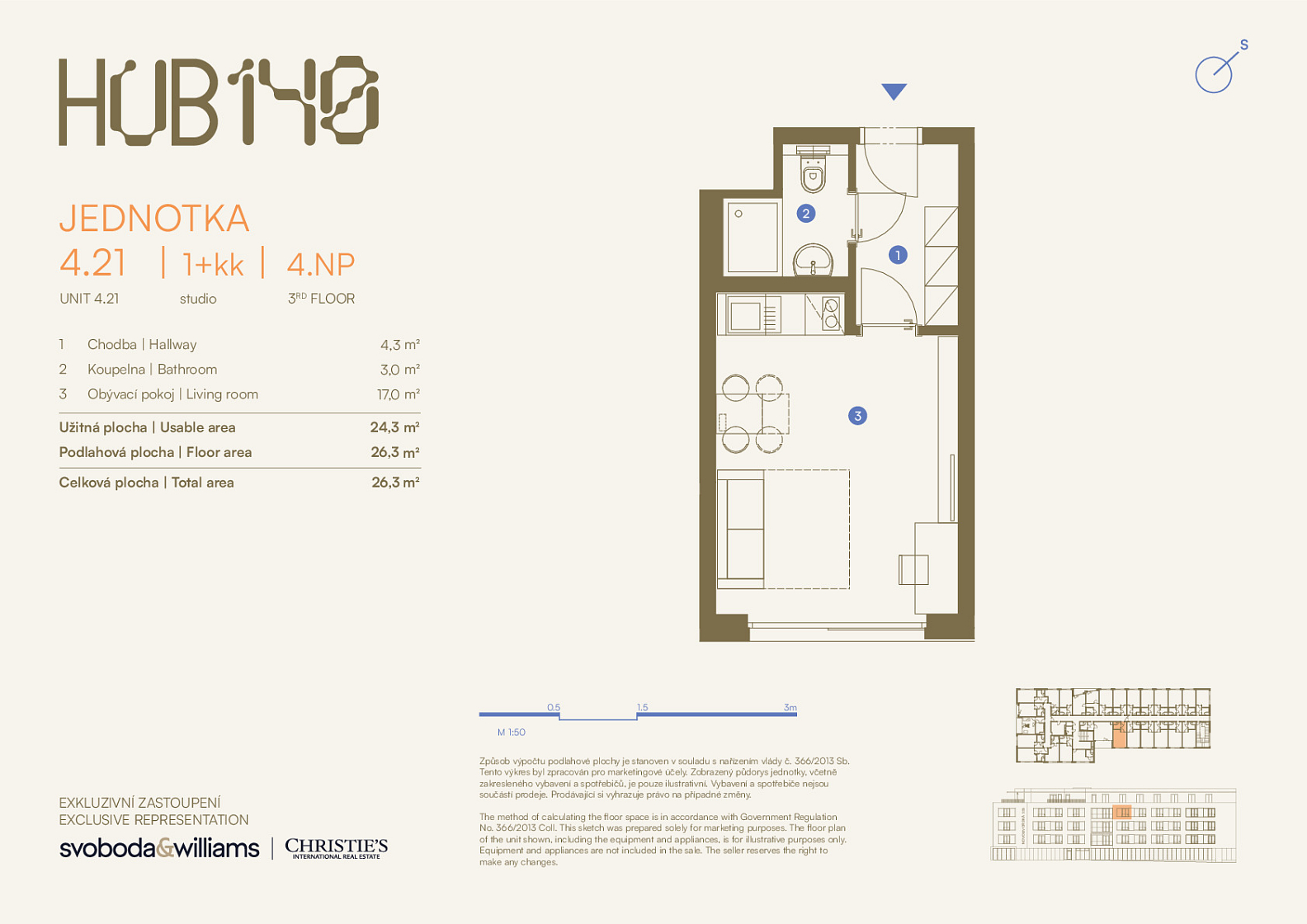 Podlahová plocha 26,3 m2.