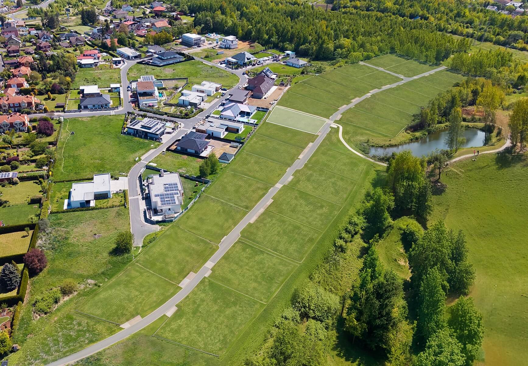 Zastavitelnost pozemku dle územního plánu činí 20 %, nejpozději v Q1 2026 se však očekává schválení navýšení zastavitelnosti na 40 %. Budoucí výstavba rodinného domu není vázána na konkrétního dodavatele, je možné realizovat individuální projekt dle přání investora.