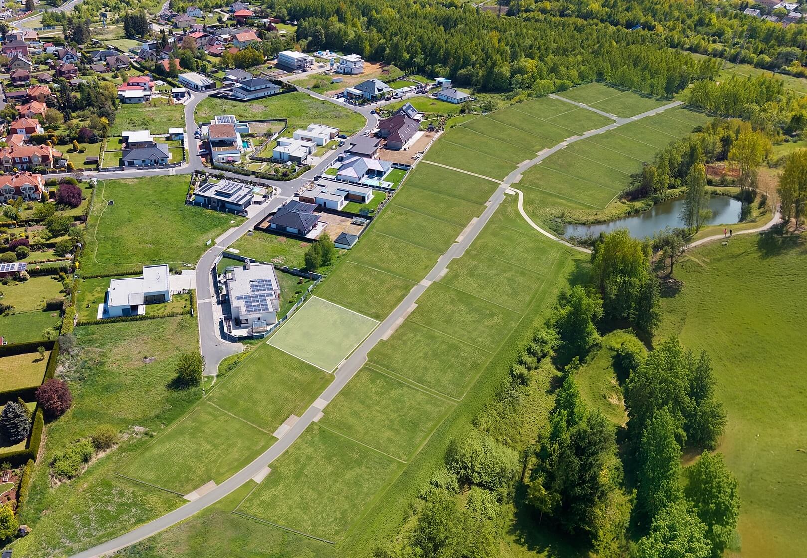Zastavitelnost pozemku dle územního plánu činí 20 %, nejpozději v Q1 2026 se však očekává schválení navýšení zastavitelnosti na 40 %. Budoucí výstavba rodinného domu není vázána na konkrétního dodavatele, je možné realizovat individuální projekt dle přání investora.