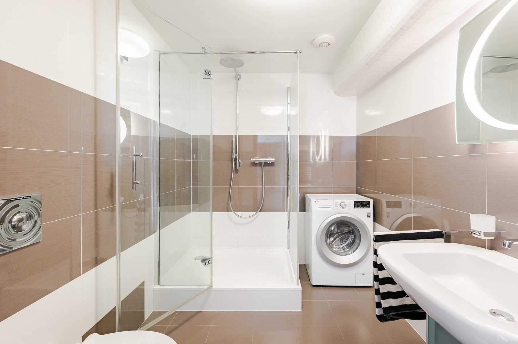Klimatizace, dřevěné parkety, dlažba, plynový kotel, pračka, myčka, indukční varná deska.