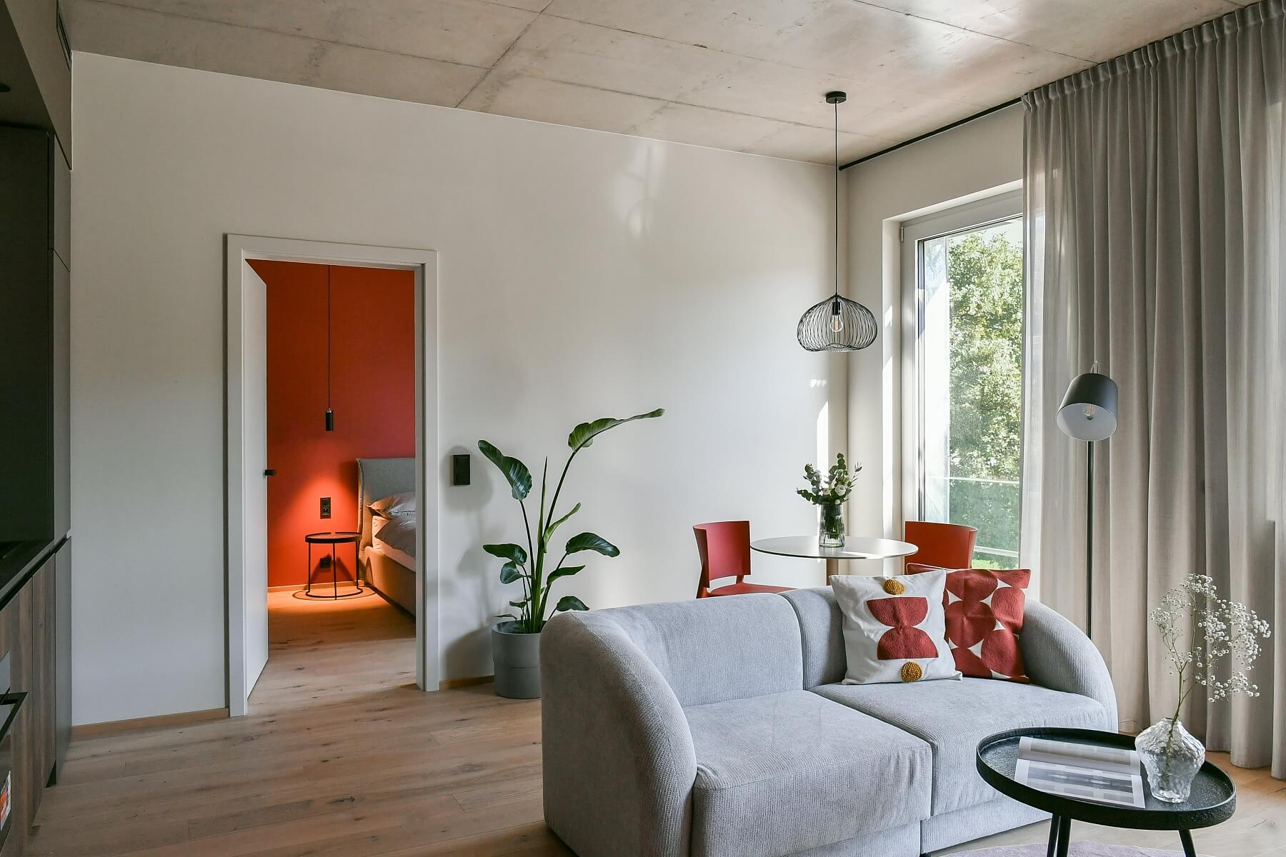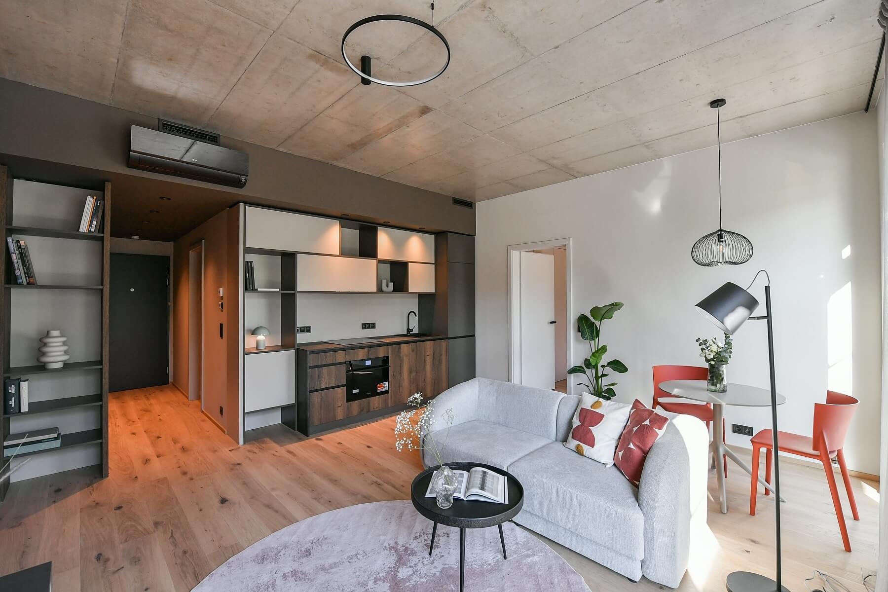 Nabízíme k pronájmu nový, kompletně zařízený byt v 1. patře nově postaveného rezidenčního projektu Block Karlín Living se společnou terasou na střeše, podzemním parkováním a klidným upraveným vnitroblokem. Sedmipodlažní dům pochází z dílny zavedené architektonické kanceláře Architekti Headhand. Budova se nachází ve vyhledávané pražské čtvrti Karlín v pěším dosahu stanic metra Invalidovna a Křižíkova, i v blízkosti zastávky tramvají. Trendy lokalita s rychlým spojením do centra nabízí kompletní občanskou vybavenost a služby. Bezprostřední okolí tvoří řada moderních business a administrativních center i tradiční městská zástavba s kosmopolitním mixem restaurací, kaváren, bister a obchodů. Čtvrť nabízí pestrou paletu příležitostí k aktivnímu vyžití např. v podobě tenisových kurtů, golfových odpališť, cyklostezky a řady fitness center.
