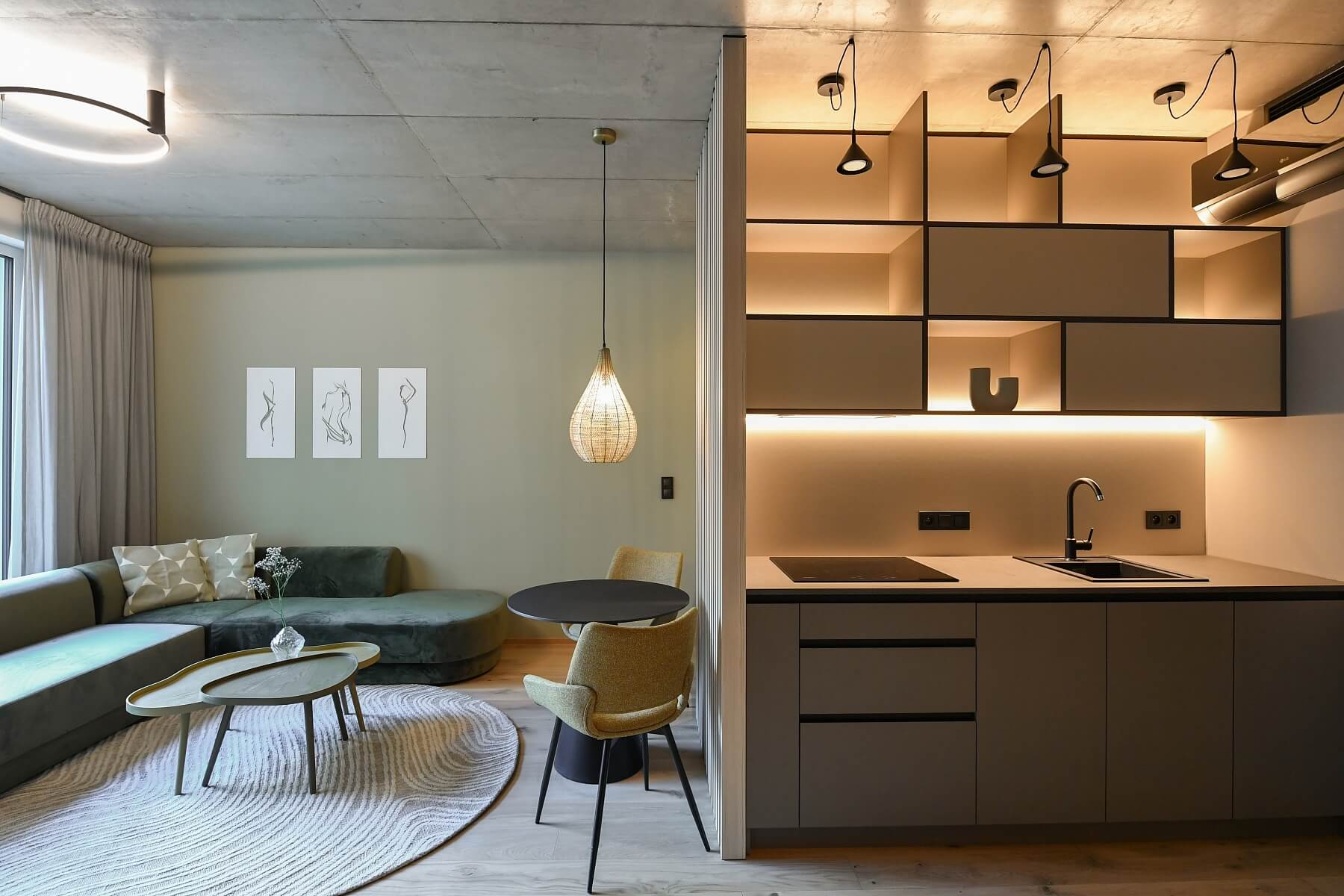 Nabízíme k pronájmu novou, kompletně zařízenou garsoniéru v 5. patře nově postaveného rezidenčního projektu Block Karlín Living se společnou terasou na střeše, podzemním parkováním a klidným upraveným vnitroblokem. Sedmipodlažní dům pochází z dílny zavedené architektonické kanceláře Architekti Headhand. Budova se nachází ve vyhledávané pražské čtvrti Karlín v pěším dosahu stanic metra Invalidovna a Křižíkova, i v blízkosti zastávky tramvají. Trendy lokalita s rychlým spojením do centra nabízí kompletní občanskou vybavenost a služby. Bezprostřední okolí tvoří řada moderních business a administrativních center i tradiční městská zástavba s kosmopolitním mixem restaurací, kaváren, bister a obchodů. Čtvrť nabízí pestrou paletu příležitostí k aktivnímu vyžití např. v podobě tenisových kurtů, golfových odpališť, cyklostezky a řady fitness center.