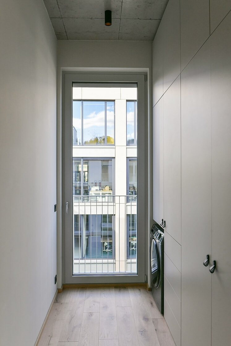 Nabízíme k pronájmu kompletně zařízený byt s terasou a 2 koupelnami v 6. patře nově postaveného rezidenčního projektu Block Karlín Living se společnou střešní terasou, podzemním parkováním a klidným upraveným vnitroblokem. Sedmipodlažní dům pochází z dílny zavedené architektonické kanceláře Architekti Headhand. Novostavba se nachází ve vyhledávané pražské čtvrti Karlín, v pěším dosahu stanic metra Invalidovna a Křižíkova, i v blízkosti zastávky tramvají. Trendy lokalita s rychlým spojením do centra nabízí kompletní občanskou vybavenost a služby. Bezprostřední okolí tvoří řada moderních business center i tradiční městská zástavba s kosmopolitním mixem restaurací, kaváren, bister a obchodů. Čtvrť nabízí pestrou paletu příležitostí k aktivnímu vyžití např. v podobě tenisových kurtů, golfových odpališť, cyklostezky a řady fitness center.