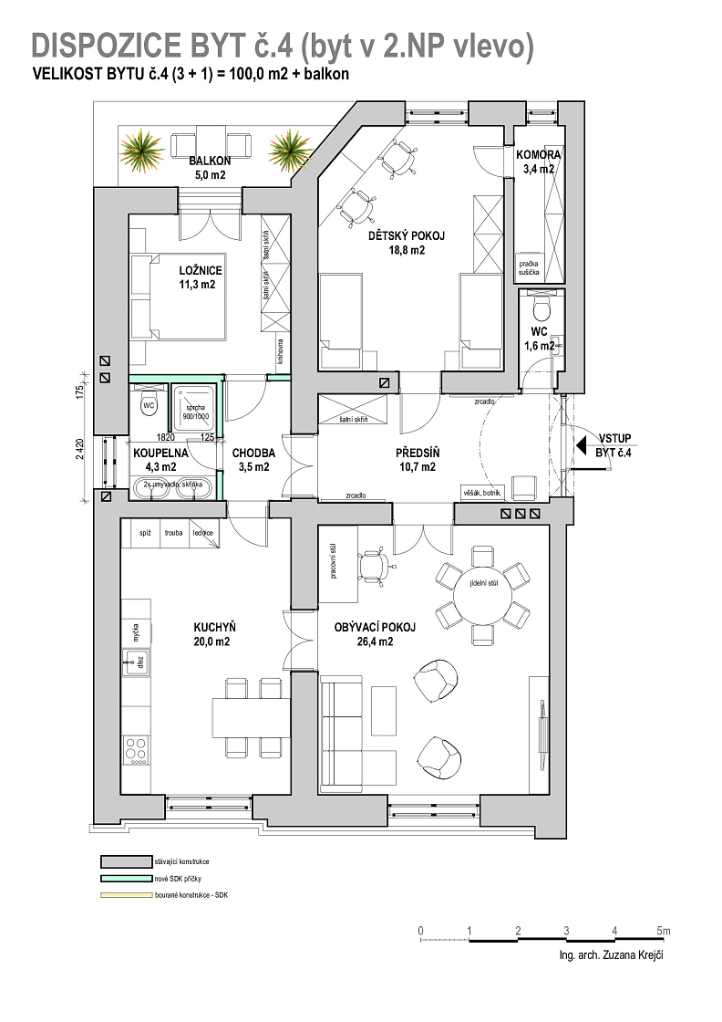 * Výměra jednotky dle bytového zákona. Plocha je tvořena součtem vnitřní výměry všech místností.