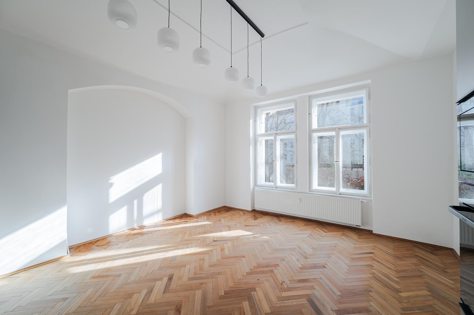 Nabízíme k pronájmu kompletně zrenovovaný nezařízený byt, situovaný ve zvýšeném přízemí nově zrekonstruovaného bytového domu s mnoha půvabnými zachovanými původními architektonickými prvky, bez výtahu. Budova stojí v rezidenční zástavbě v Praze Nuslích u potoka Botič, pár kroků od náměstí Bratří Synků se zastávkami tramvají a plnou občanskou vybaveností v bezprostředním okolí. Klidná lokalita v blízkosti obchodního centra Arkády Pankrác, business centra Pankrác, parku Jezerka a Divadla Na Fidlovačce, v rychlém dosahu centra města.