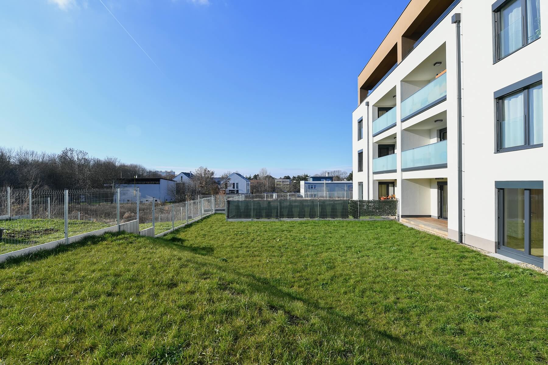 Nabízíme k pronájmu nový nezařízený byt s terasou a privátní zahradou, situovaný v 1. patře nově postaveného bytového domu s výtahem a parkováním. Budova se nachází ve svahu v klidné rezidenční zástavbě se spoustou zeleně v Praze 8 Bohnicích, v přímém sousedství lesa Čimický háj, pouhých 7 minut jízdy autem od stanice metra Kobylisy. V blízkém dosahu je k dispozici plná občanská vybavenost a služby, pár minut jízdy je vzdáleno vyhledávané aquacentrum Šutka. Nedaleko domu je autobusová zastávka s pravidelnými spoji k metru Kobylisy.