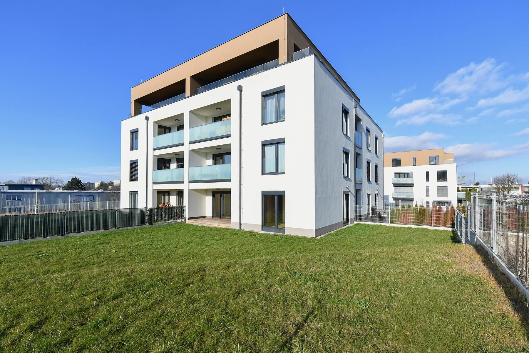 Plovoucí podlaha, dlažba, elektricky ovládané předokenní žaluzie, centrální vytápění, pračka, myčka, indukční varná deska, mikrovlnná trouba, videotelefon. V ceně je zahrnuto jedno parkovací stání v podzemní garáži a jedno kryté venkovní stání.