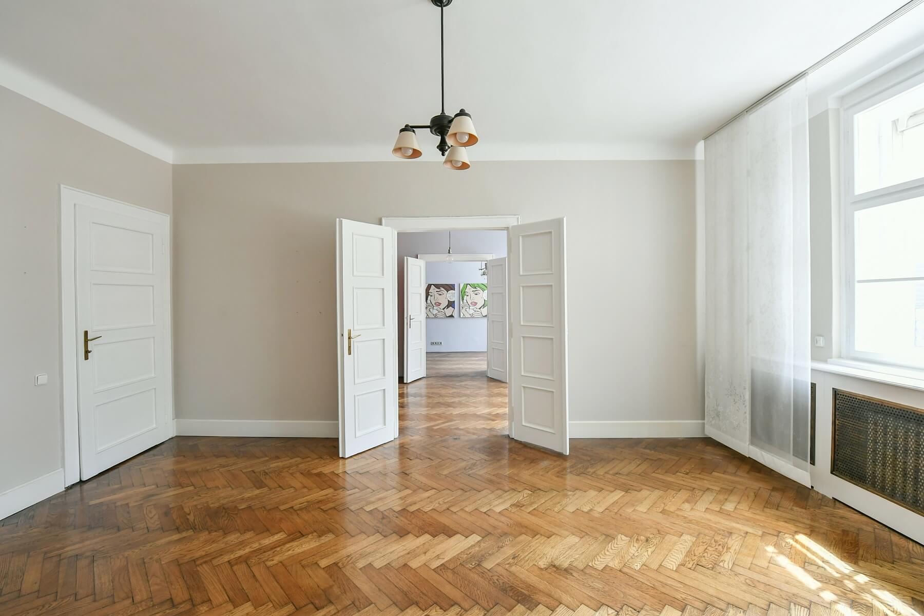 Prostorné místnosti, vysoké stropy, zrenovované parkety, repasovaná špaletová okna, plynový kotel, pračka, myčka, mikrovlnná trouba.