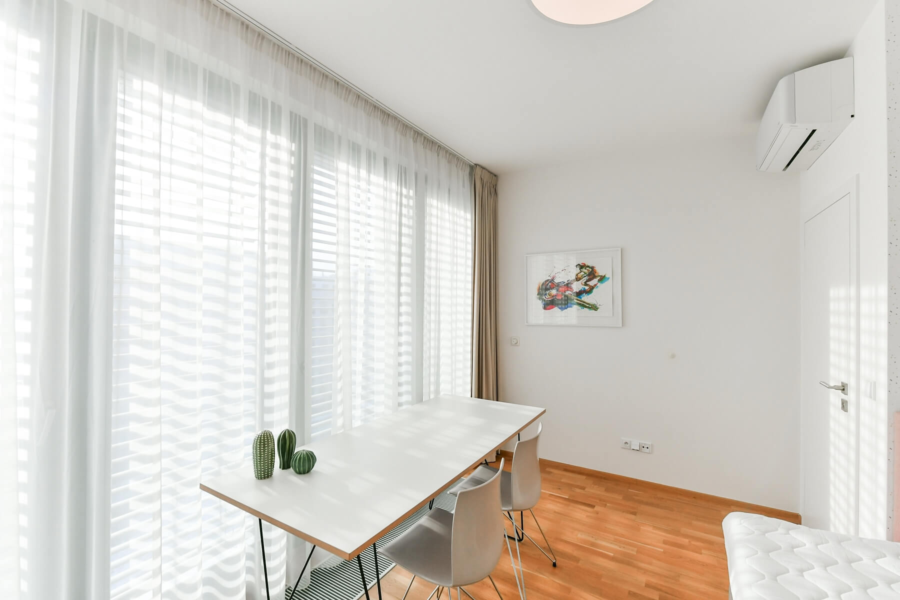 Klimatizace, dřevěné plovoucí podlahy, dlažba, koberec, elektricky ovládané předokenní žaluzie, centrální vytápění, pračka, myčka, kombinovaná trouba, TV, sklep. V ceně je zahrnuto garážové stání. Obyvatelé domu mohou využívat komunitní střešní zahradu.