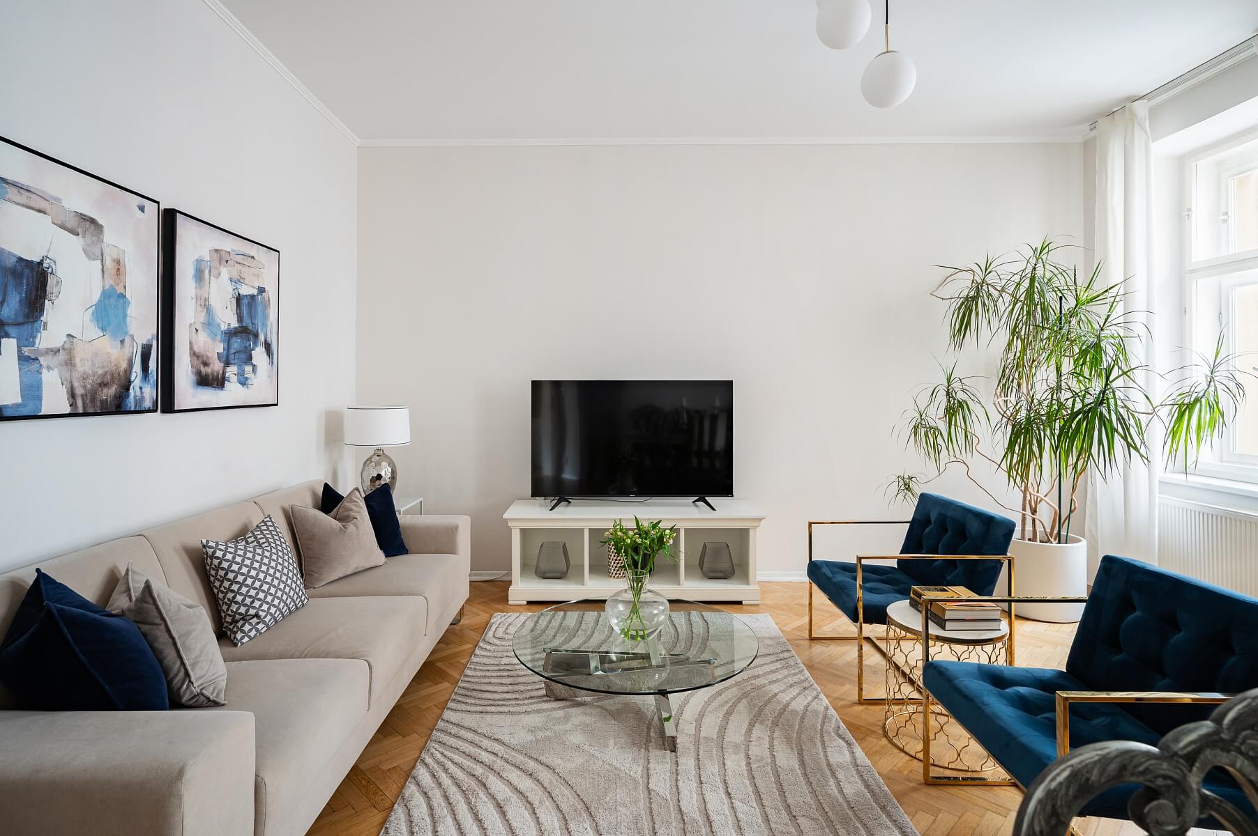 Nabízíme k pronájmu kompletně zařízený byt v 1. patře zrekonstruovaného bytového domu s výtahem v klidné ulici v srdci Královských Vinohrad, jen pár bloků od náměstí Míru se zastávkami tramvají a plnou občanskou vybaveností a službami v okolí. Budova stojí ve vysoce žádané lokalitě nedaleko rozlehlého parku Havlíčkovy sady s výhledem na panorama Vršovic.