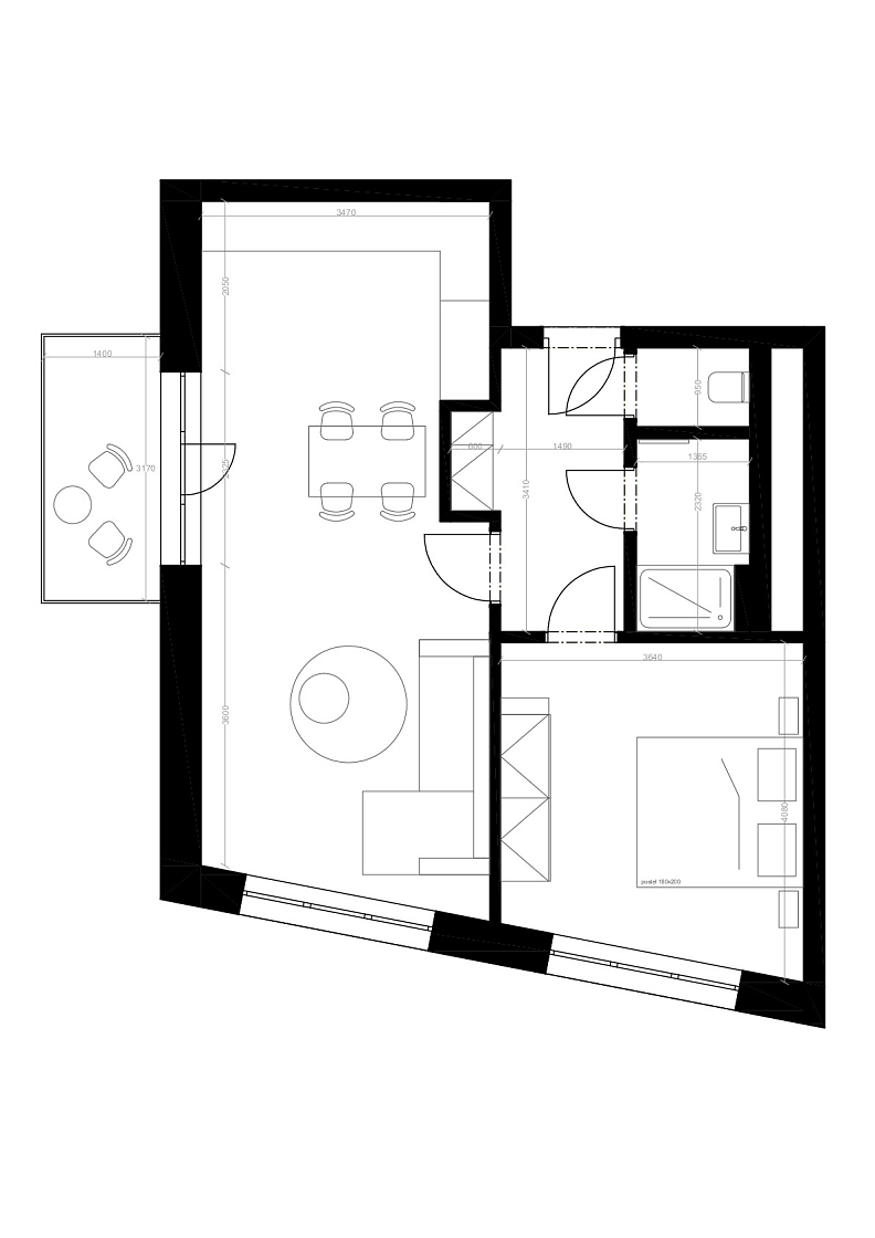 Vzdušný byt orientovaný na jihozápad, tvoří velkorysý obývací pokoj s plně vybavenou kuchyní, jídelním prostorem a vstupem na balkon, světlá ložnice, designová koupelna se sprchovým koutem, samostatná toaleta a vstupní chodba.