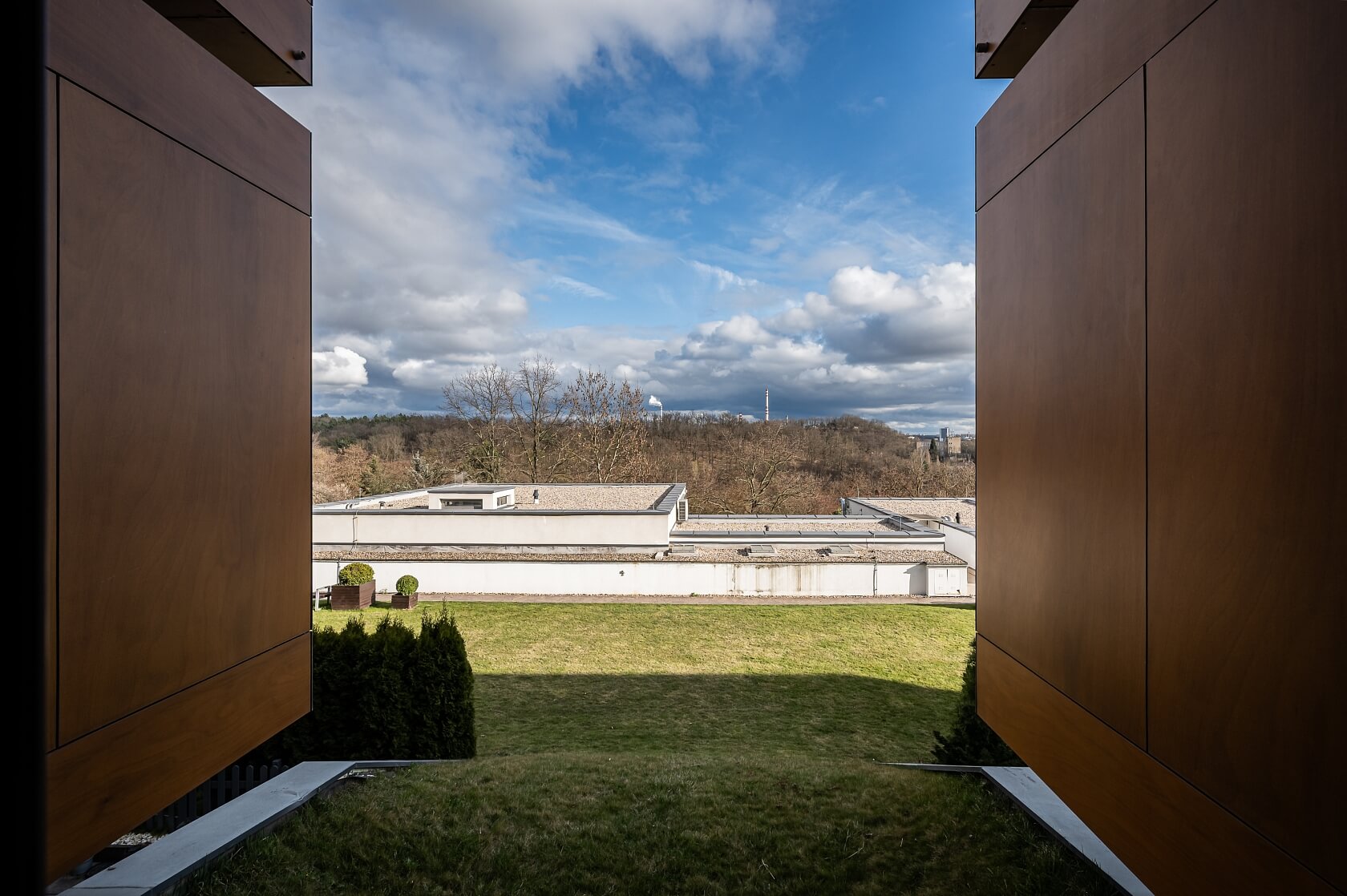 Byt v atraktivním rezidenčním komplexu Azalea v krásném přírodním prostředí. Nabízíme k pronájmu částečně zařízený renovovaný mezonetový byt s pěknými výhledy do okolní zeleně. Byt leží v přízemí architektonicky zajímavého uzavřeného rezidenčního komplexu z r. 2011 se společnou zahradou, výtahem, podzemním parkováním a kamerovým systémem. Dům, zasazený do zeleného svahu s vlastní příjezdovou komunikací, se nachází v klidné rezidenční lokalitě s rychlou dostupností do centra (15 minut autem), pouhých 100 m od autobusové zastávky, v blízkosti zalesněných vrchů Smetánka a Třešňovka a říčky Rokytky. Ideální lokalita pro milovníky běhání, cyklistiky a procházek v přírodě.