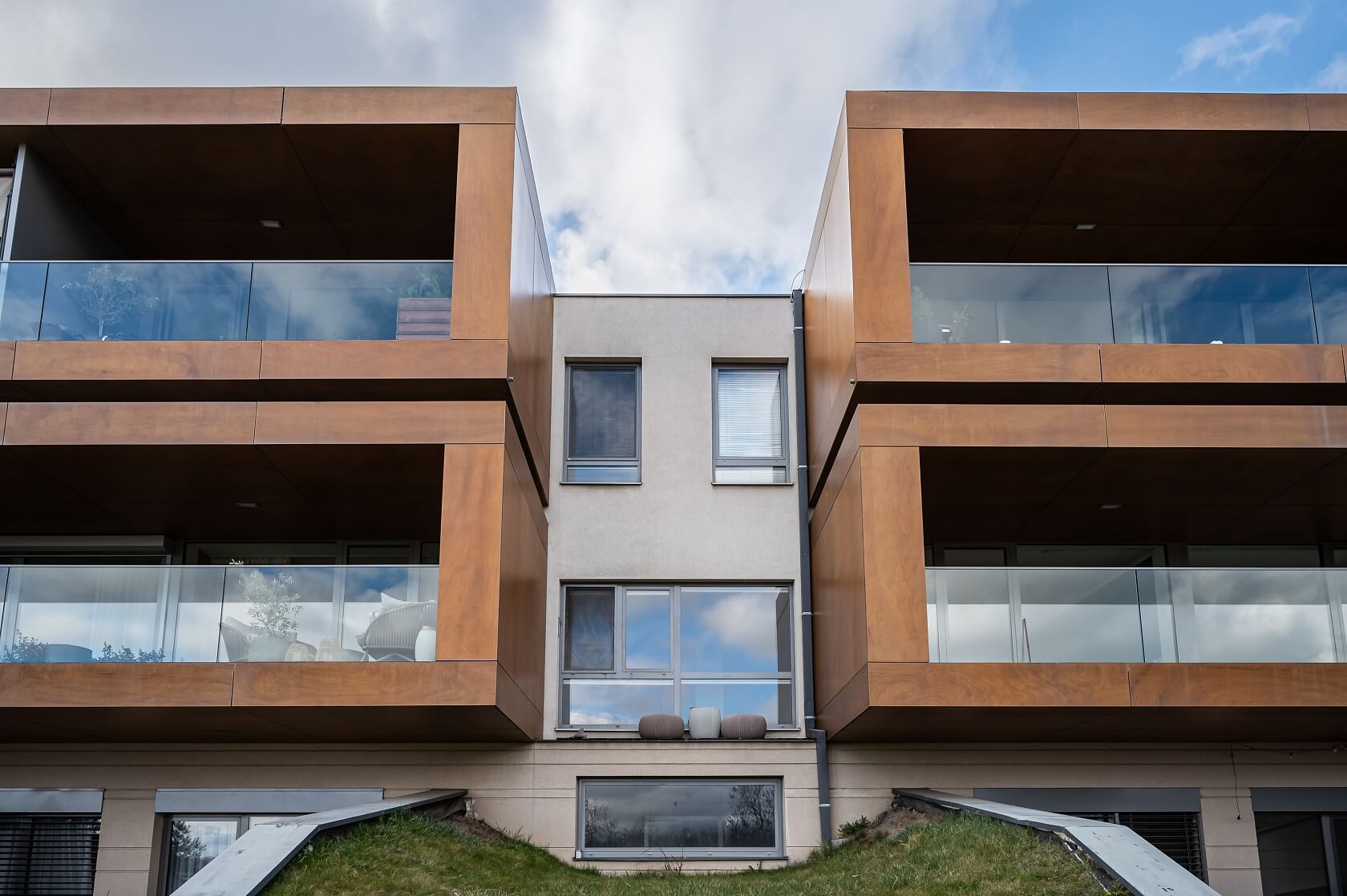 Vinylové podlahy, dlažba, plissé žaluzie, sítě proti hmyzu, centrální vytápění, pračka, myčka, videotelefon, sklep. Uzavřený objekt s bránou na čip poskytuje rezidentům naprosté soukromí a klid a je střežen bezpečnostní agenturou. V ceně je zahrnuto garážové stání