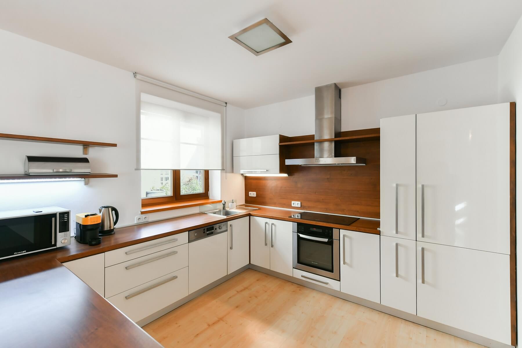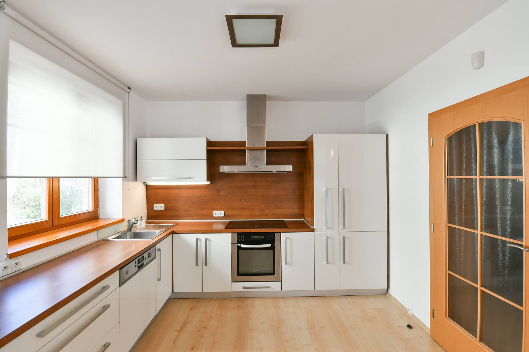 Plovoucí laminátové podlahy, dlažba, bezpečnostní vstupní dveře, plynový kotel, pračka, sušička, myčka, indukční varná deska.