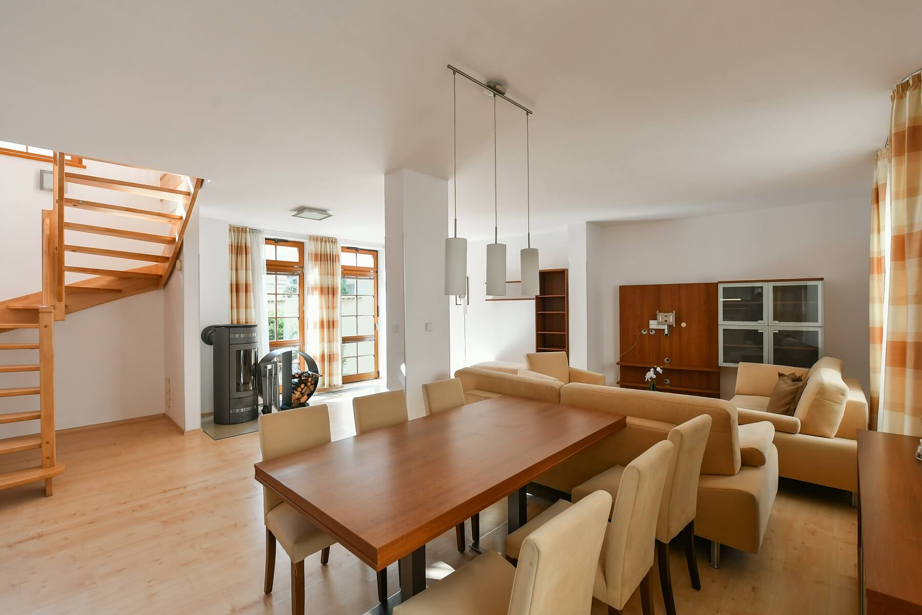 Nabízíme k pronájmu mezonetový byt s jedinečnou atmosférou a prostornou terasou v úžasné lokalitě v centru Prahy. Renovovaný zařízený byt je situován v jednopatrovém domku v malebném dvorním traktu se společnou upravenou zahrádkou. Budova stojí v tiché ulici v historickém centru Prahy v blízkosti nábřeží Vltavy, Žofína a Národního divadla, v lokalitě s veškerou občanskou vybaveností v bezprostředním dosahu, pár minut chůze od zastávky tramvají a stanice metra Národní třída a Václavského náměstí.