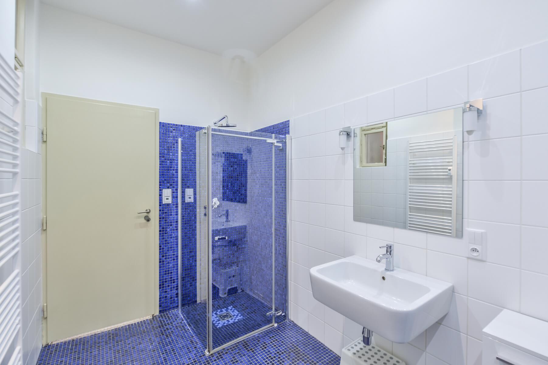 Původní parkety, mozaikové obklady a dlažba, nová špaletová okna na jižní straně a původní špaletová okna na straně severní, masivní dřevěné obložky, centrální vytápění.
