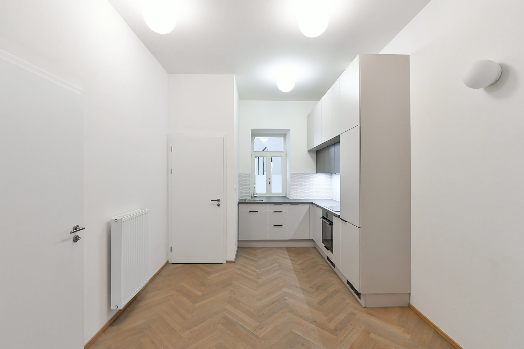 Dřevěné parkety, dlažba, bezpečnostní vstupní dveře, centrální vytápění, myčka, indukční varná deska, videotelefon, sklep.