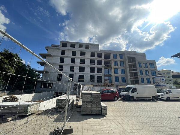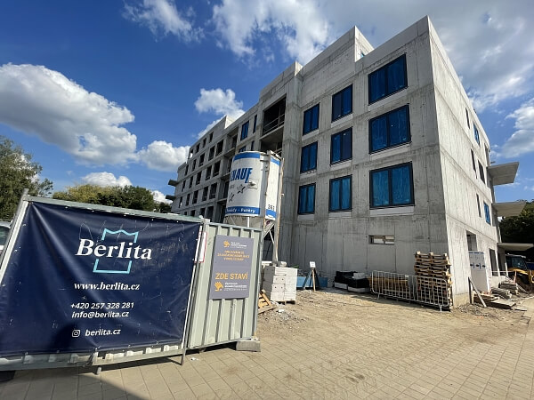 Stavební práce na bytovém domě BERLITA pokračují svižným tempem – v současné době probíhá realizace vnitřních omítek v sekci A, postupná montáž oken v sekci A a B a izolace střech. Zároveň jsou instalovány rozvody TZB v domě.