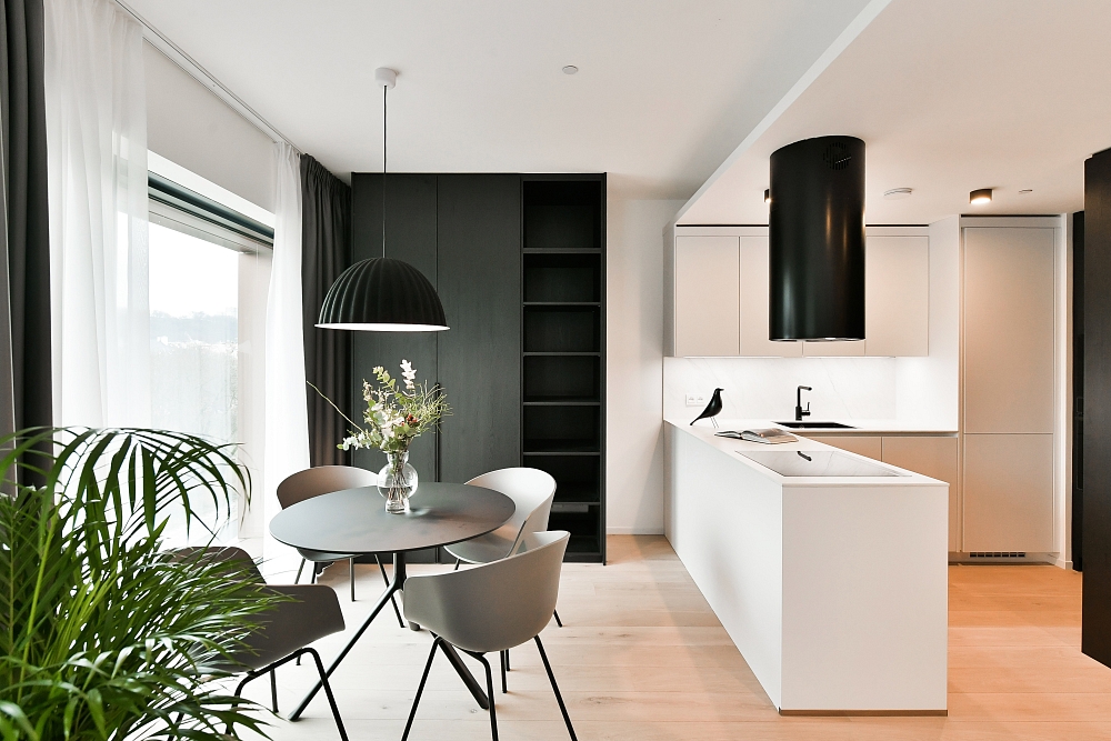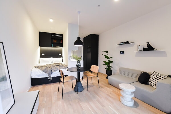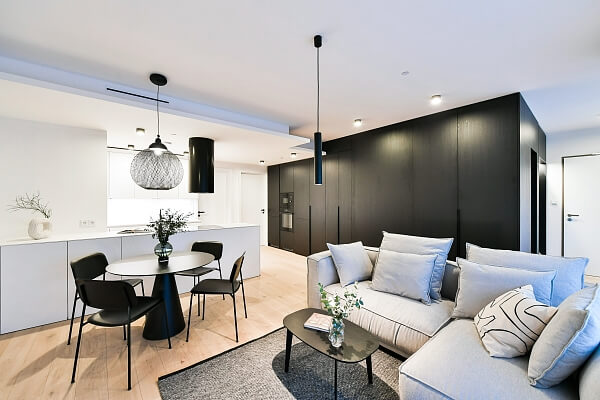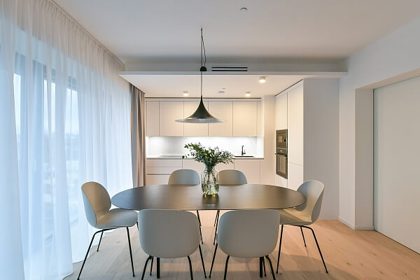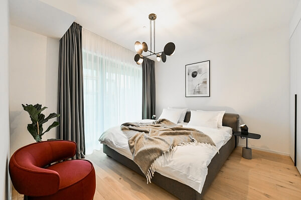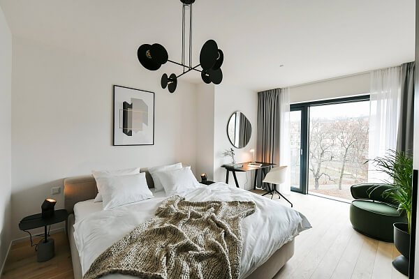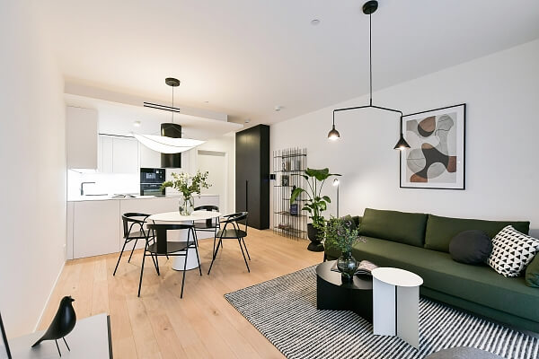 Všechny charakterizuje soudobý, elegantní styl v umírněné barevnosti. „Díky ikonickým solitérům a jejich barevným variacím jsme dosáhli toho, že byty nepůsobí unifikovaně, ale každý má svůj osobitý charakter,“ zdůrazňuje Nováková. I u nejmenších studií kladla důraz na dostatek úložných prostor a pocit vzdušnosti. „Hodně jsme využívali modulární nábytek, vybírali kousky, které jde snadno přesouvat, aby prostor nepůsobil zaskládaně a jeho využití bylo co nejvíc variabilní,“ dodává designérka. Exkluzivním dodavatelem nábytku a svítidel je společnost Lino Design.