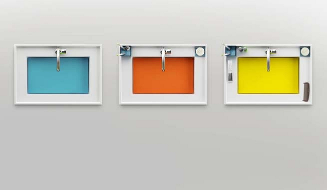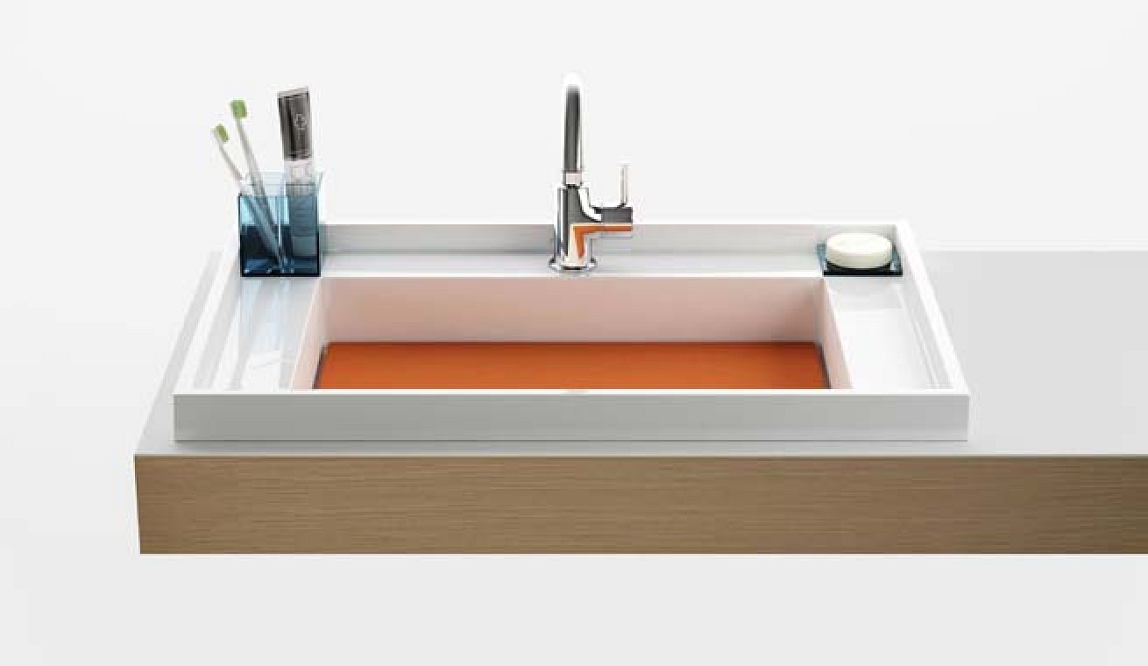 Praktickou podstatu kolekce tvoří široká odkládací plocha se zvýšeným lemem kolem celého umyvadla a vany, která zabraňuje pádu věcí a definuje tím jejich harmonické umístění. Součástí setu je i snadno vyměnitelné dno umyvadla v pěti volitelných barvách vyrobené z umělého kamene a doplňky z akrylátového skla, které přesně padnou do rohů umyvadla. Vana a umyvadlo jsou vyráběny z minerální pryskyřice s povrchem gel coat. Podle individuálního přání zákazníka lze vanu připravit jak pro stojánkovou baterii, tak pro některý z ostatních typů baterií. Rozměry vany jsou 190 x 90 cm, umyvadlo má rozměr 72 x 50 cm. Zákazníkům jsou nabízeny různé varianty obložení van a umyvadla.